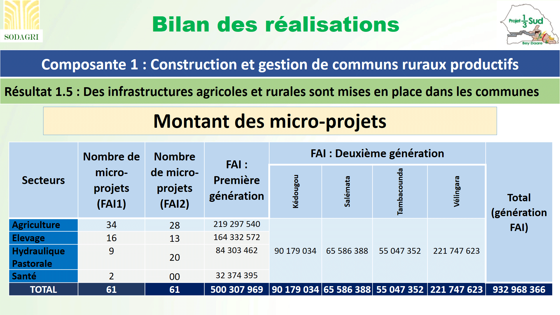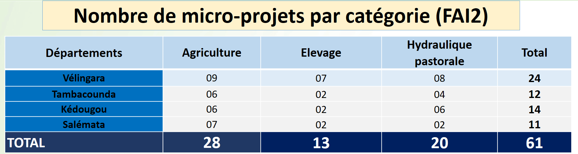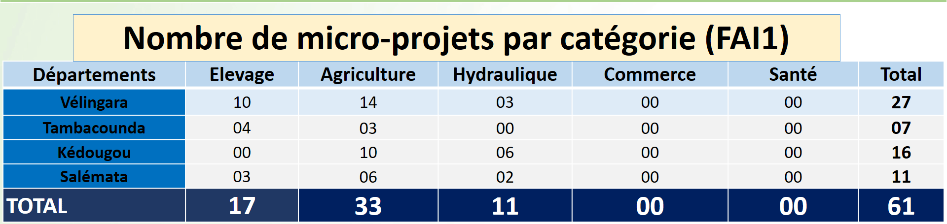 MICRO-PROJETS PAR SECTEURS D'ACTIVITÉS